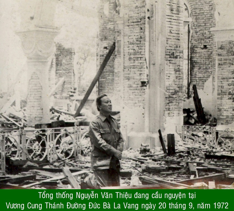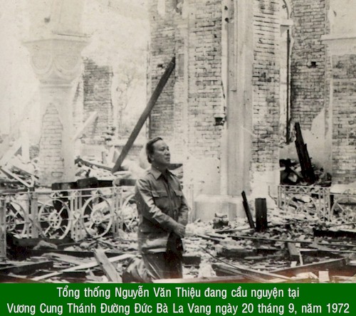 hình Tồng thống Thiệu quỳ tại thánh đường La Vang đã trở