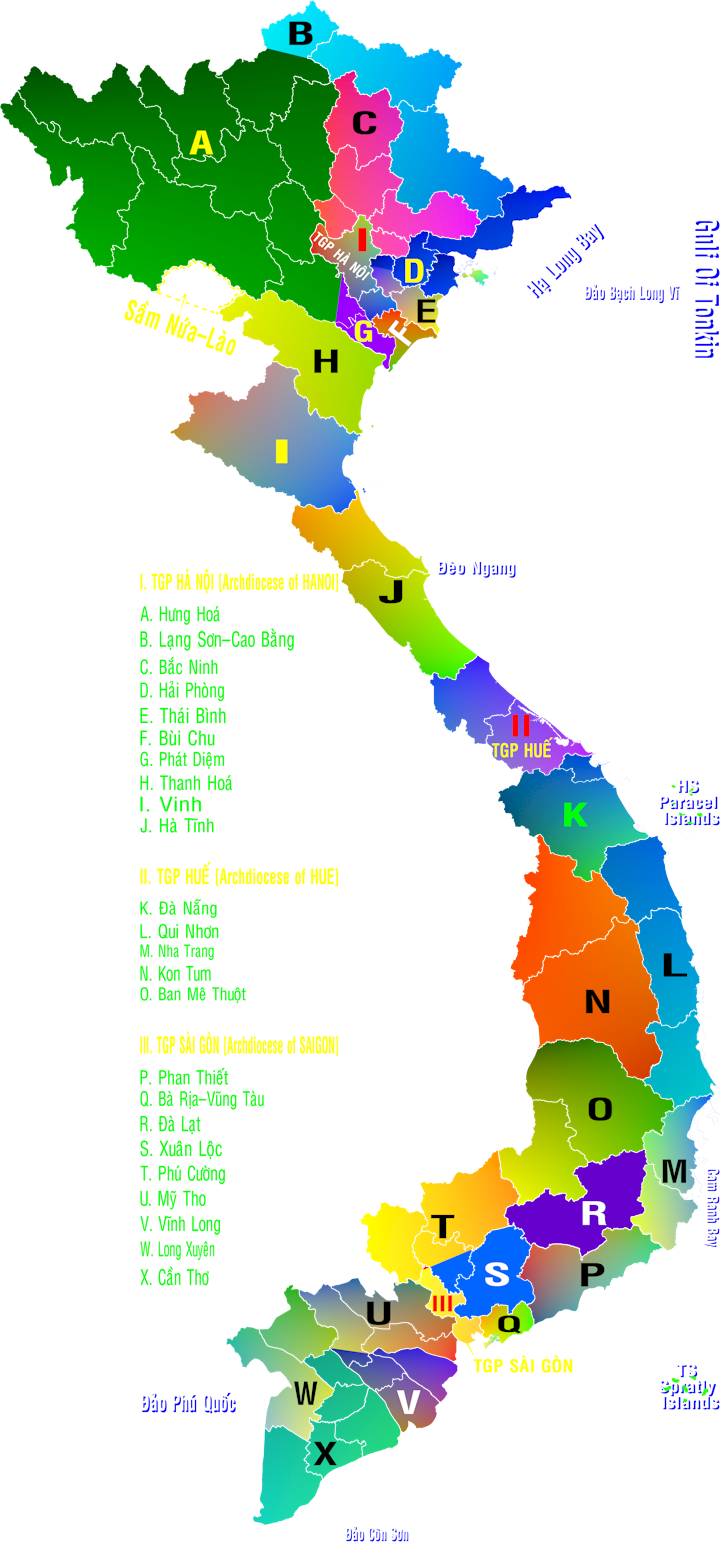 Bản Đồ VN với tên các Giáo phận CGVN