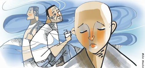 Một hôm đến chùa tôi thấy chị xuống tóc cạo đầu