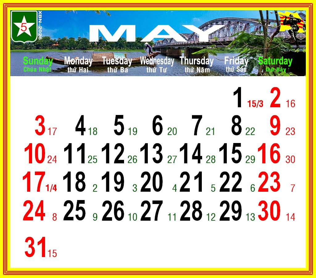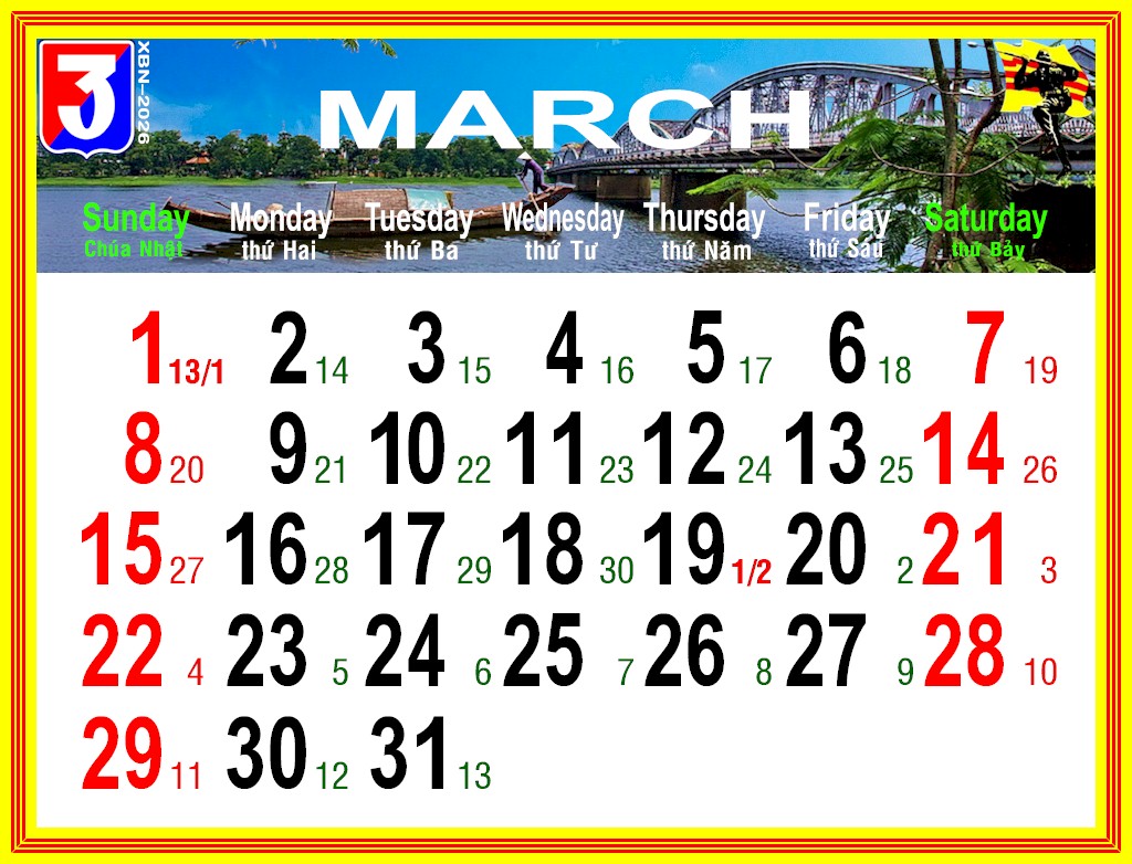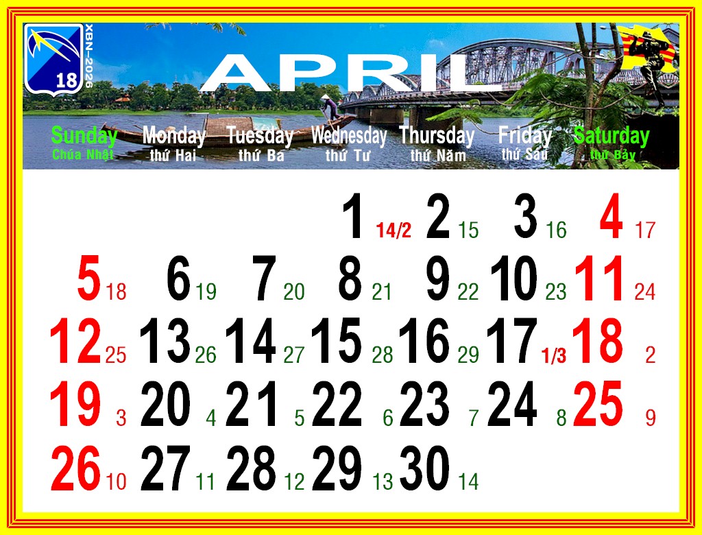Lịch VDQLVNCH xuân BÍNH NGỌ – 2026