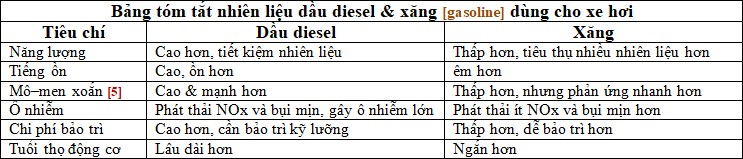 xăng và dầu diesel một cách khái quát để chúng ta hiểu một cách