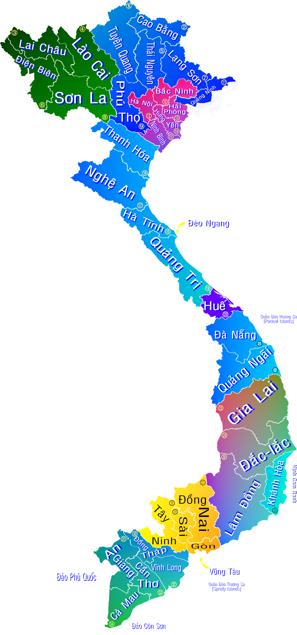 Bản đồ GHCG Việt Nam cũ [63 tỉnh thành]